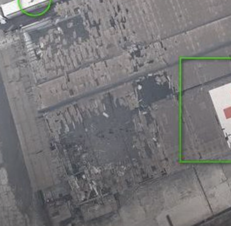 Closer inspection shows that it is a logistics hall, on the roof of which was recently drawn a Red Cross. The open roof also shows that it is empty. At the time of the damage, apparently neither humanitarian supplies nor hospital equipment were housed there.