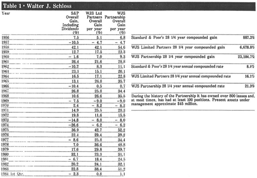 When Buffett described him as a super investor in 1984, Walter had been managing the WJS Partnership single-handedly for 28 years.
