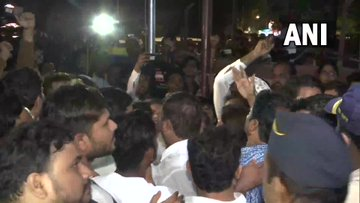 #WATCH | Mumbai: Sloganeering outside Bandra Police Station by BJP workers following an attack on party leader Kirit Somaiya allegedly by Shiv Sena workers.