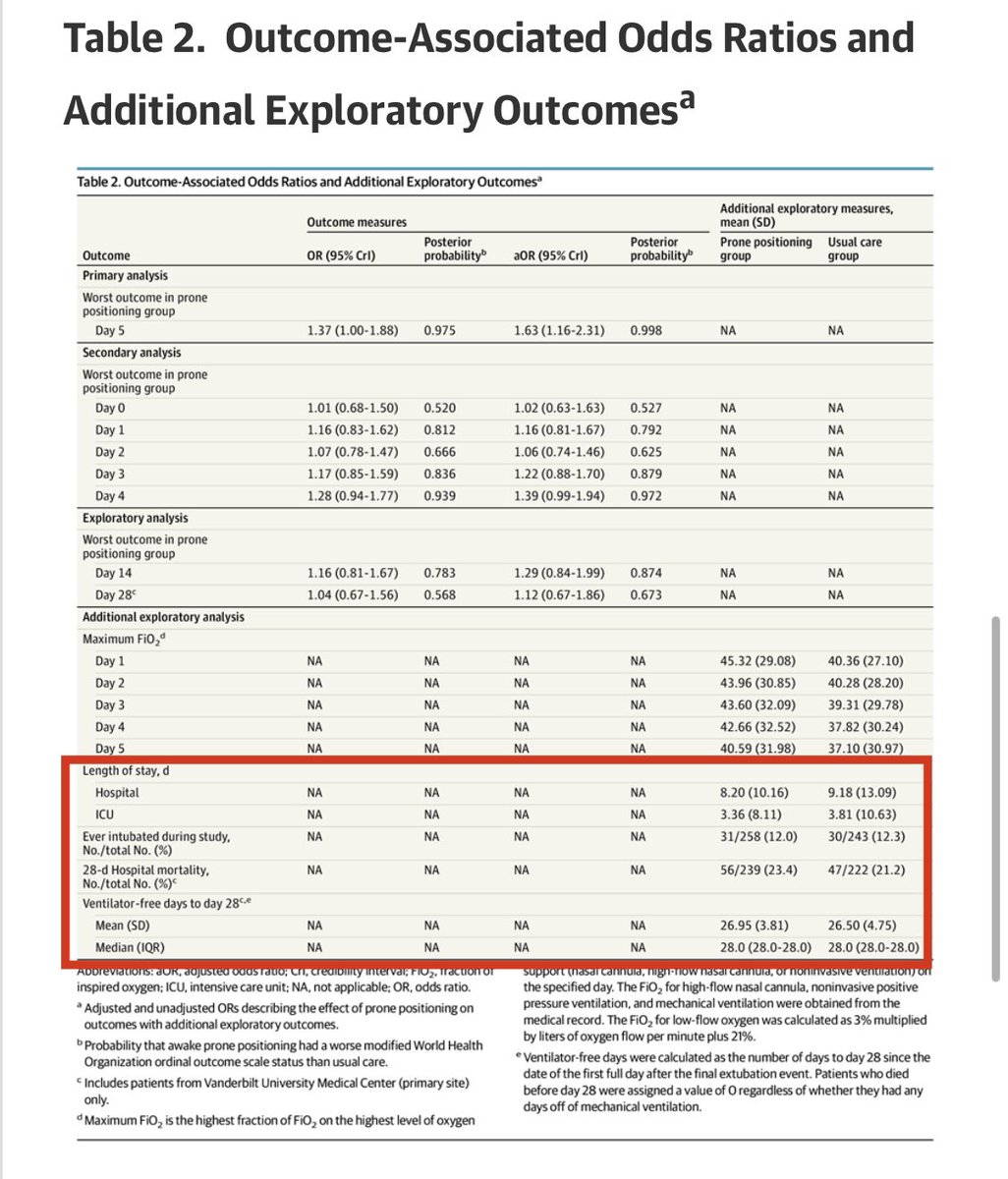 I wish the authors had looked at the subgroup that spent more time prone to see if they had better outcomes.