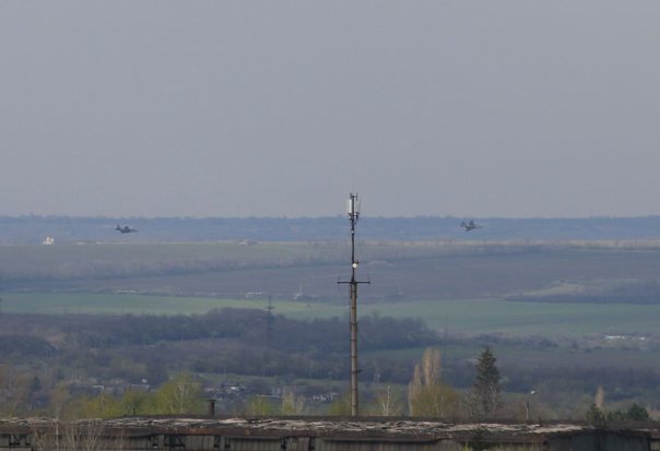 A lot of Russian aircraft over Donbas this morning. Pictures reportedly from #Horlivka.