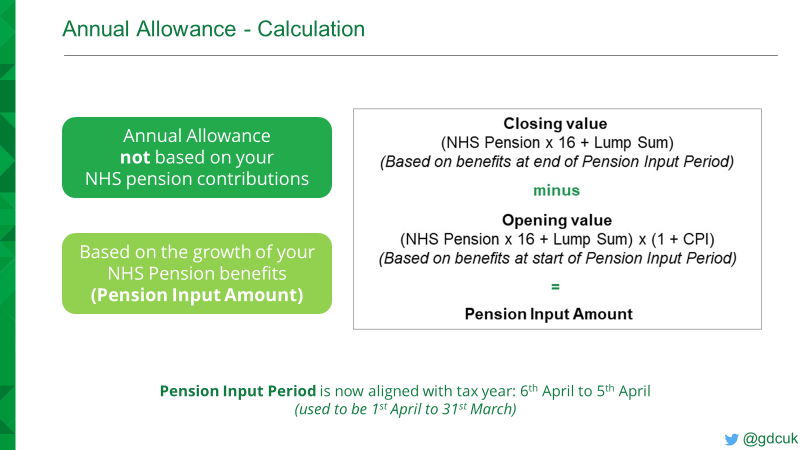 AA is based on the growth of your NHS pension benefits over the tax year, called Pension Input Period