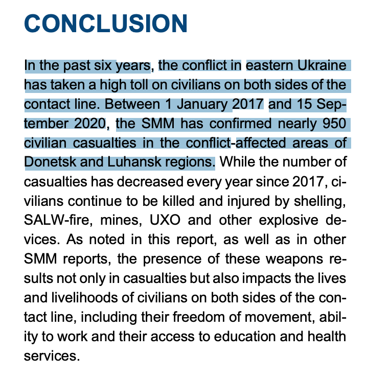 A questo punto controbatteranno con un famigerato report dell'OSCE. Report che ovviamente non hanno mai letto, dal momento che va solo dal 2017 al 2020, non dal 2014. Report in cui si contano circa 950 vittime civili nel periodo esaminato: