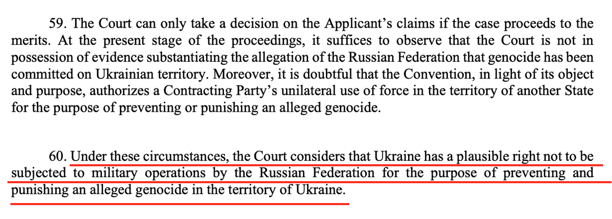 «...la Corte considera che l'Ucraina ha un diritto plausibile a non essere sottoposta a operazioni militari da parte della Federazione Russa allo scopo di prevenire e punire un presunto #genocidio nel territorio dell'#Ucraina»