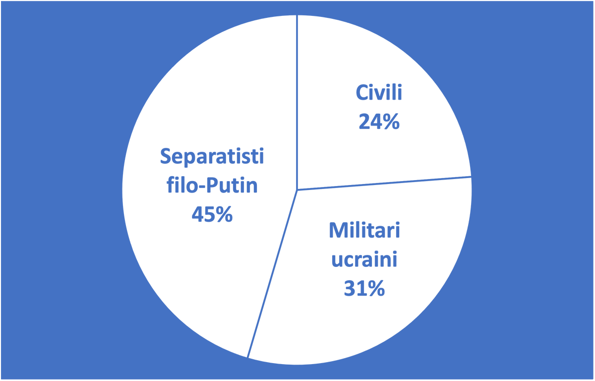 Vi rimando al report originale dell'OSCE, in cui troverete grafici dettagliati e le conclusioni. Report che afferma anche che "il numero delle vittime è diminuito ogni anno dal 2017". Ovviamente non sappiamo quanti civili siano stati uccisi da chi.