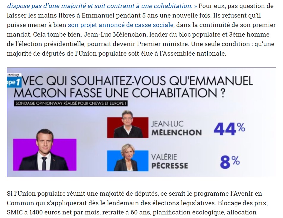 Du reste, 46% de ceux qui souhaitent une cohabitation disent vouloir Marine Le Pen comme Premier ministre, ce que @L_insoumission se garde bien de préciser.