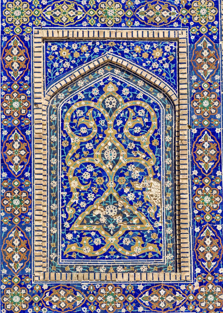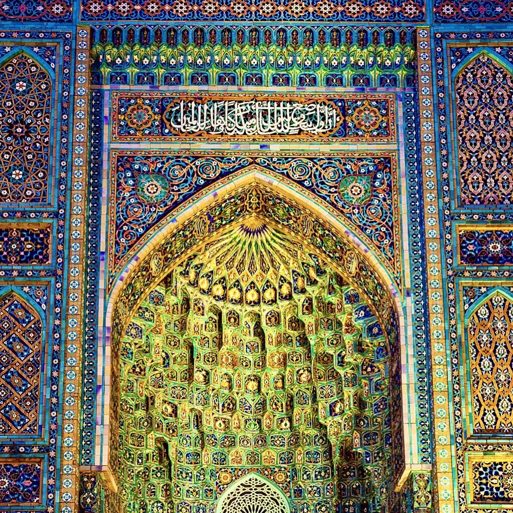 The beautiful turquoise & azure tile mosaics adorning historic mosques, is a highlight of Uzbekistan. Such as the ceramic-tiled walls of Tash Khauli in Khiva; the azure tile designs on the Registan madrassas and Shah-i-Zinda in Samarkand #Ramadan