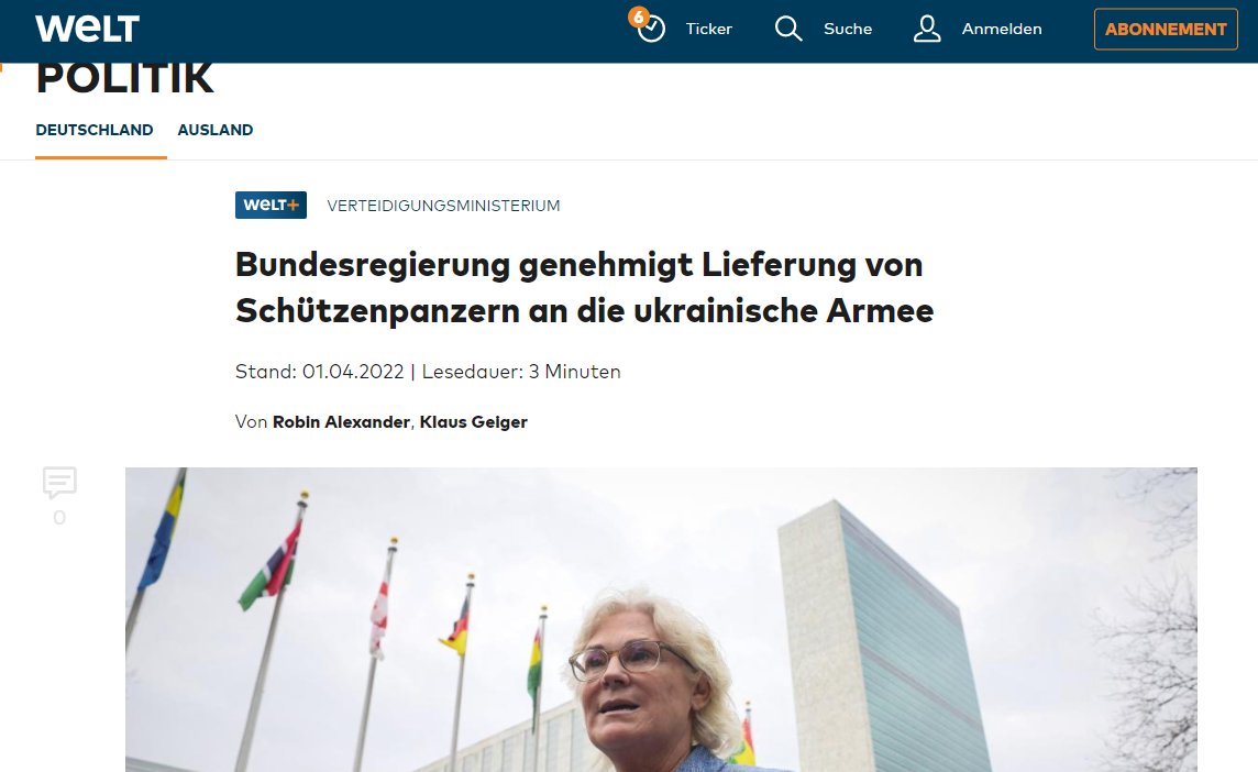 Offiziell soll die Entscheidung wohl heute von Bundesverteidigungsministerin Lambrecht angekündigt werden, wenn sie bei einer von den USA einberufenen Ukrainekonferenz auf Air Base Ramstein auftreten wird.