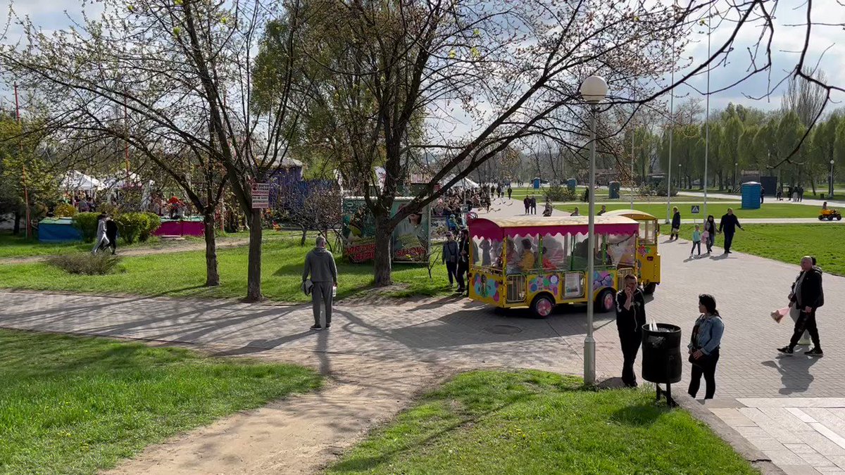 Children laughed as they drove electric toy cars through the park (lucky!)