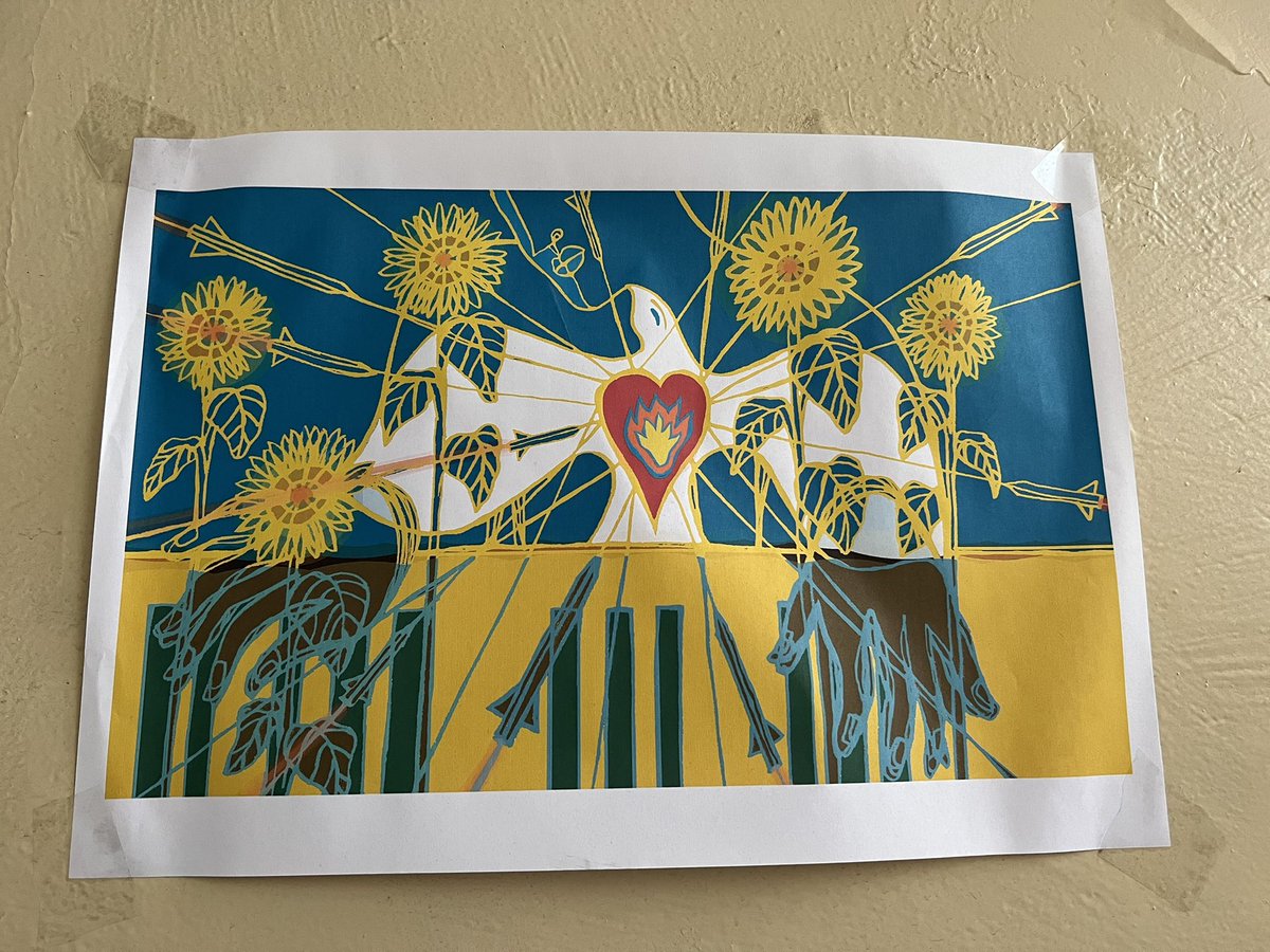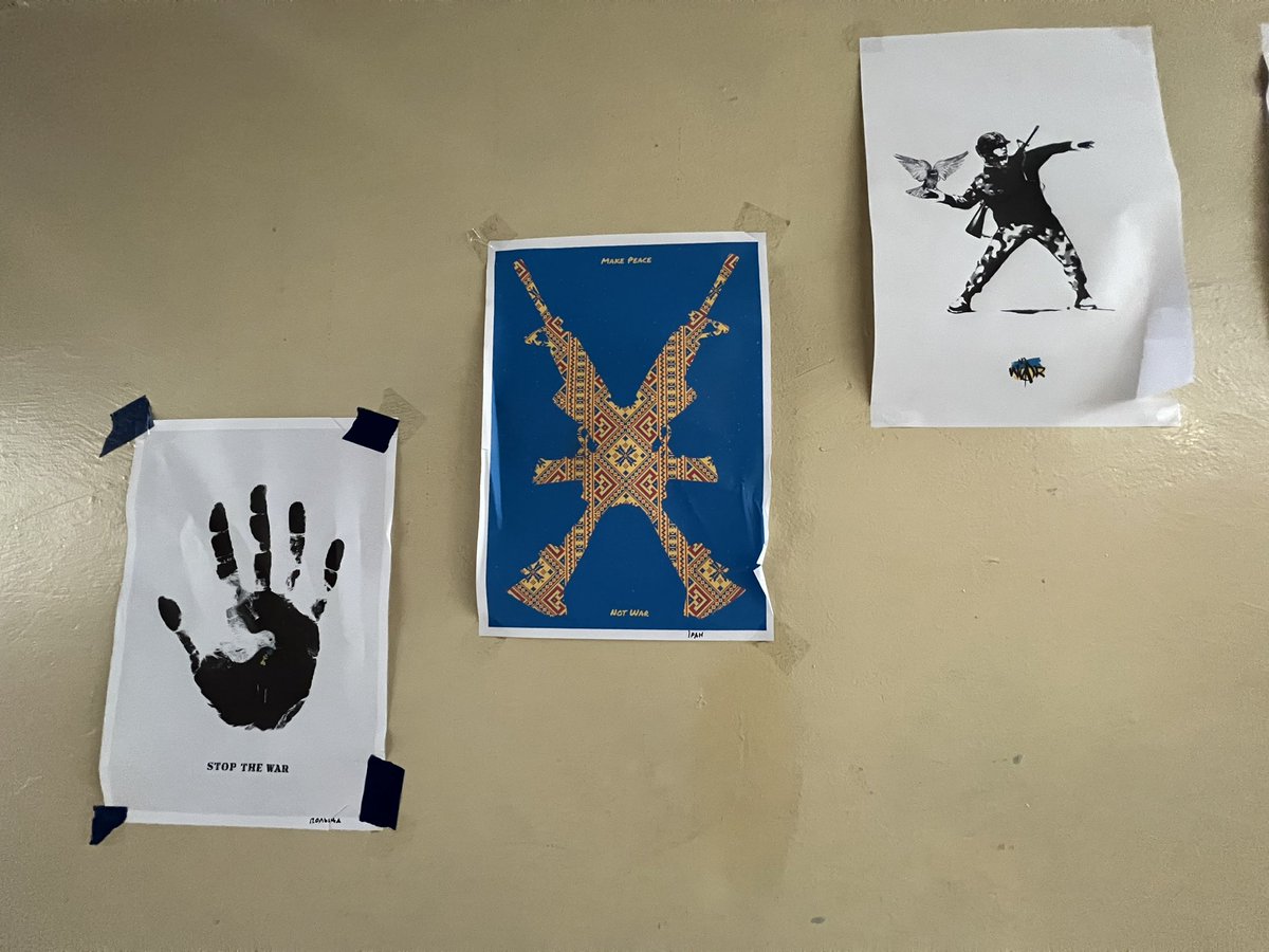 Also wanted to showcase some artwork drawn by local artists in Dnipro, up in a volunteer center for those coordinating humanitarian aid in the city