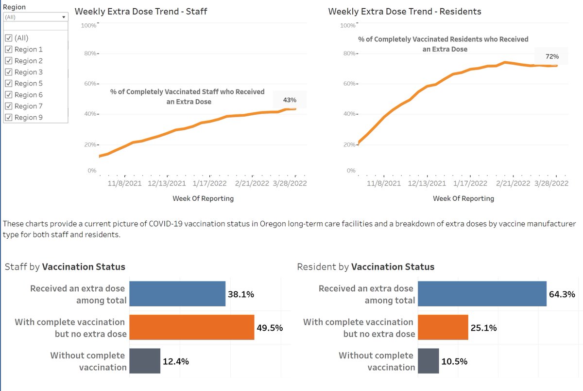 the ball, & we're now seeing declines in resident vaccination rates in regions 5 & 9. Staff vax rates never met goal in region 5, & 7 just barely made it. Booster rates also give concern. There should be more emphasis on Moderna boosters because the immunity profile is better...