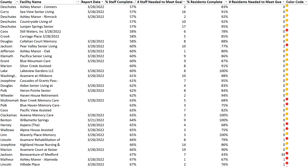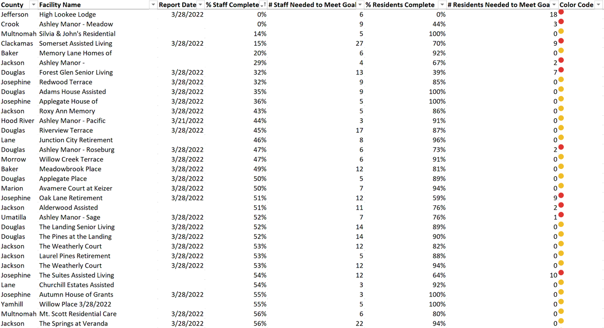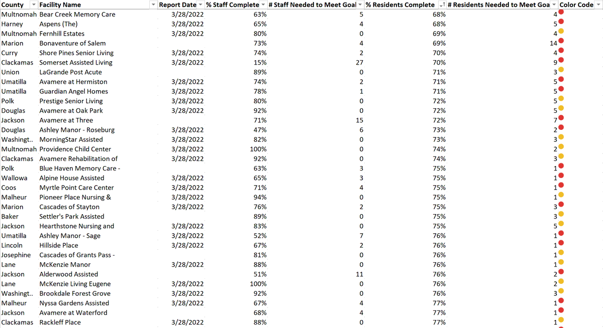 Resident vaccinations first. Note: Willamette View Health is a likely reporting error.