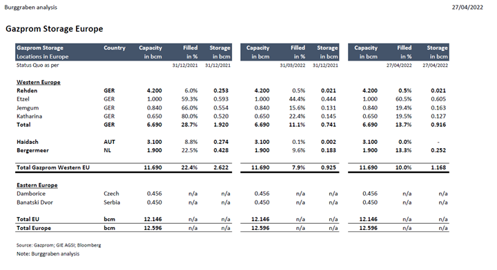 For that, let us first understand the remaining 7 EU Gazprom storage facilities. Is there evidence that Gazprom is about to replenished 12bcm of much needed EU storage?
