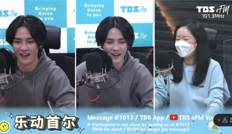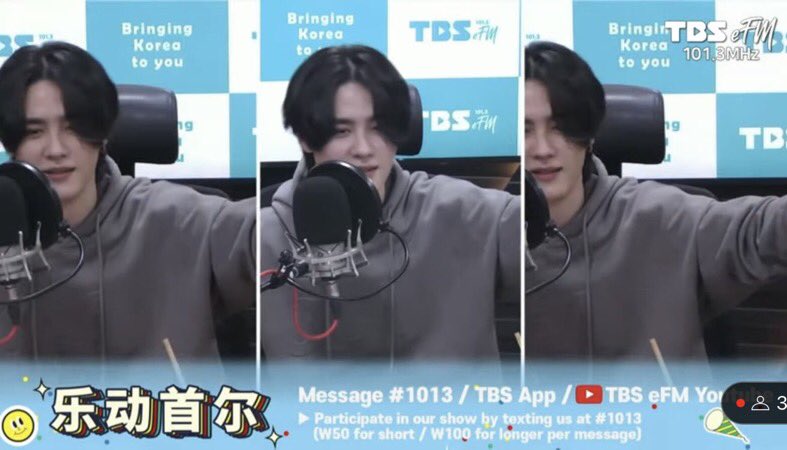 Kun said the script is black/white so it’s not as easy to tell but in the screen u could see his blue-ish hair. LOL listeners guessed Minghao, yesung