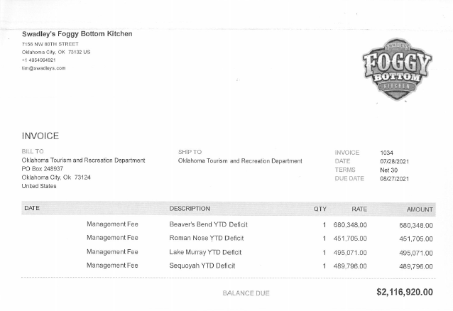 On Monday the Oklahoma Tourism and Recreation Department announced they "canceled the lease concession with Swadley's"... "due to suspected fraudulent activity and questionable business practices."