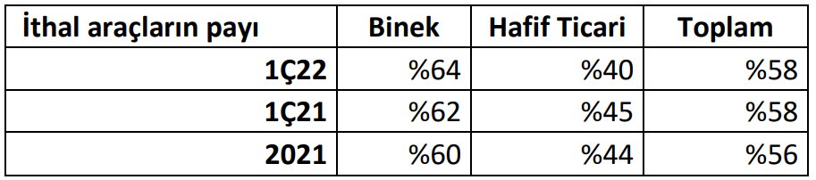 Bu dönemde ithal araçların payı binek araçlarda %64’e yükselirken, hafif ticari araçlarda %40’a gerilemiş ve toplamda ise %58 olarak gerçekleşmiştir.