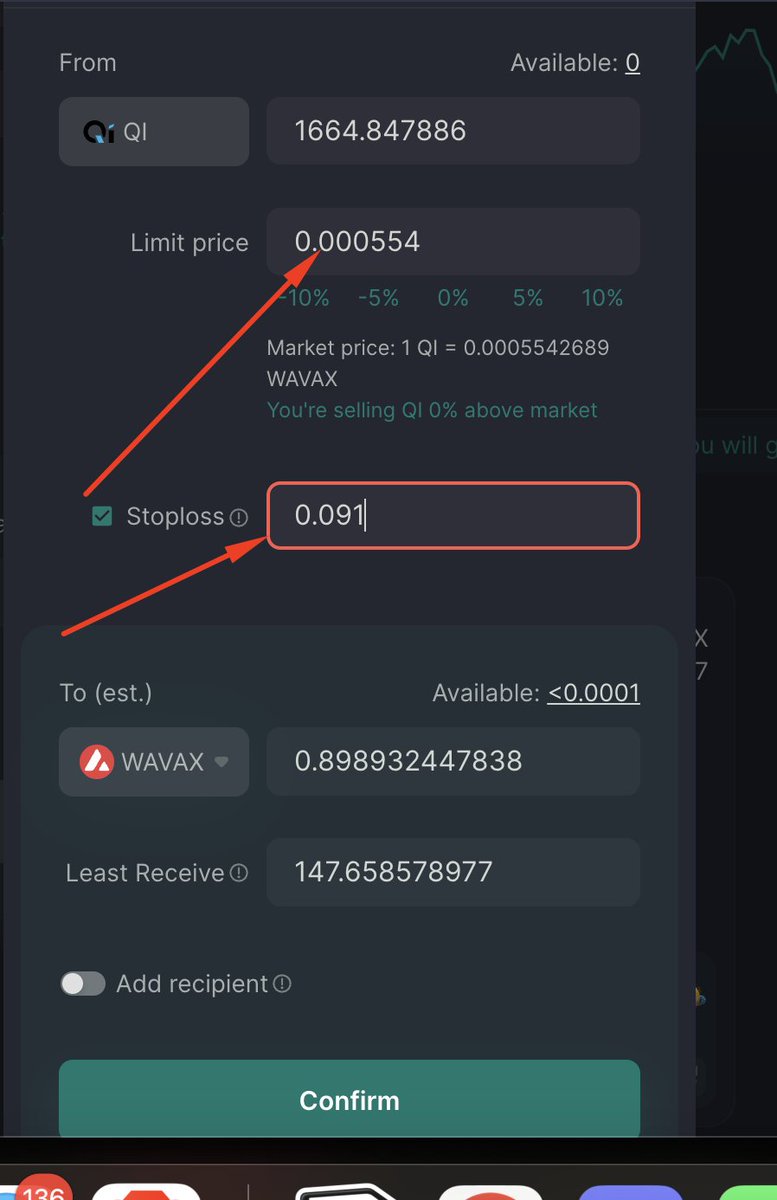 Modify Paneline tıklayalım ve önce limit fiyatı değiştirip confirm yapalım sonra stop loss belirleyelim