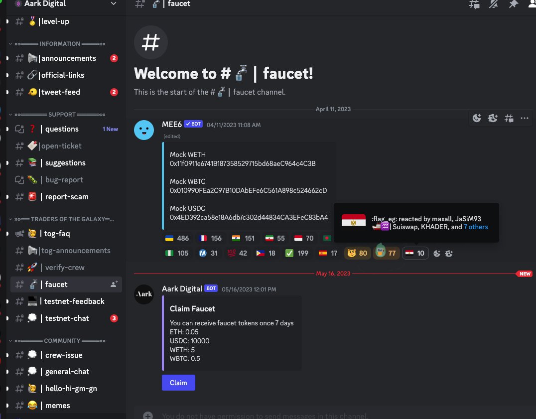 ✨Aark, Arbitrum Goerli üzerindeki test ağına yeni başladı. Kullanıcılar dApp ile etkileşime geçebilir, puan kazanabilir ve katılımlarının bir ödülü olarak benzersiz bir NFT alabilirler.