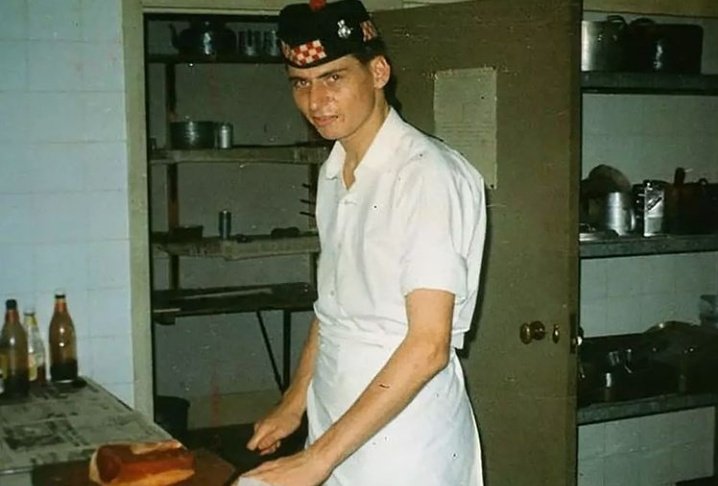 Fotografiado durante el tiempo que fue chef en el ejército. Quizás ahí fue donde aprendió a cortar bien la carne, ya que solía descuartizar a sus víctimas para quemarlas en una hoguera o tirarlas por el inodoro.