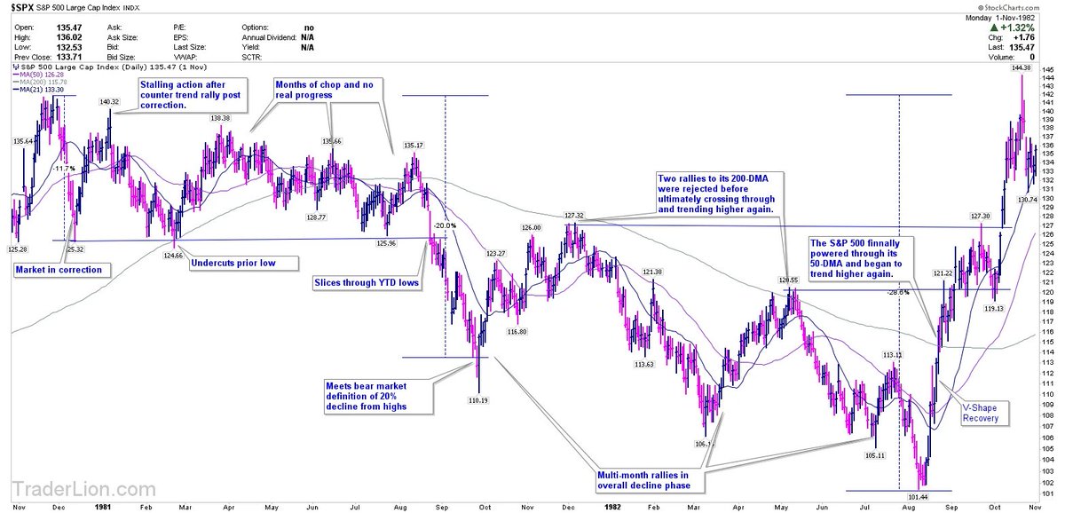 In the thread below, we will be charting every major correction/bear market between February of 1980 and September of 2018.