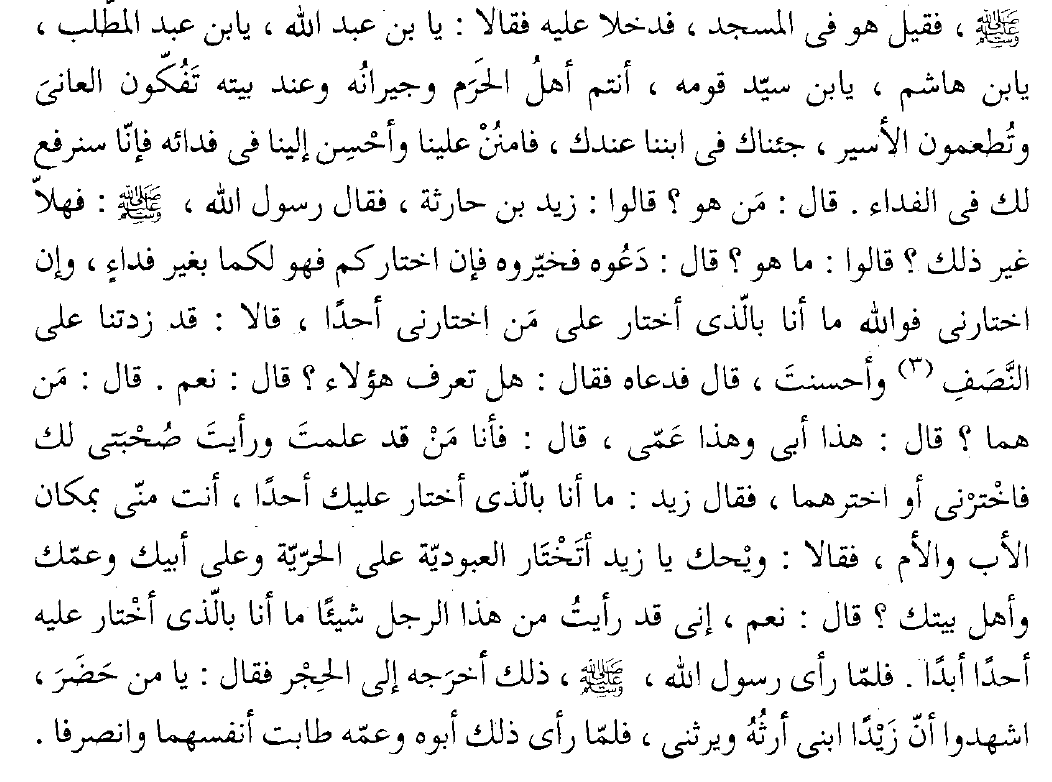 2. زید البته برده زاده نشده بود (پدرش از بنی کلب و مادرش، از بنی معن بودند). اما در شبیخونی که در آن ایام بین قبایل عربستان مرسوم بود به بردگی گرفته شده بود.