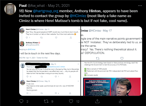 13) Molly Kingsley. I remember when Molly told me she doesn't "work for Hart". I remember it because her wording sticks out. Molly is in #Hartleaks, so is involved with the anti-vax disinformation group but she doesn't "work for Hart", got it??!!