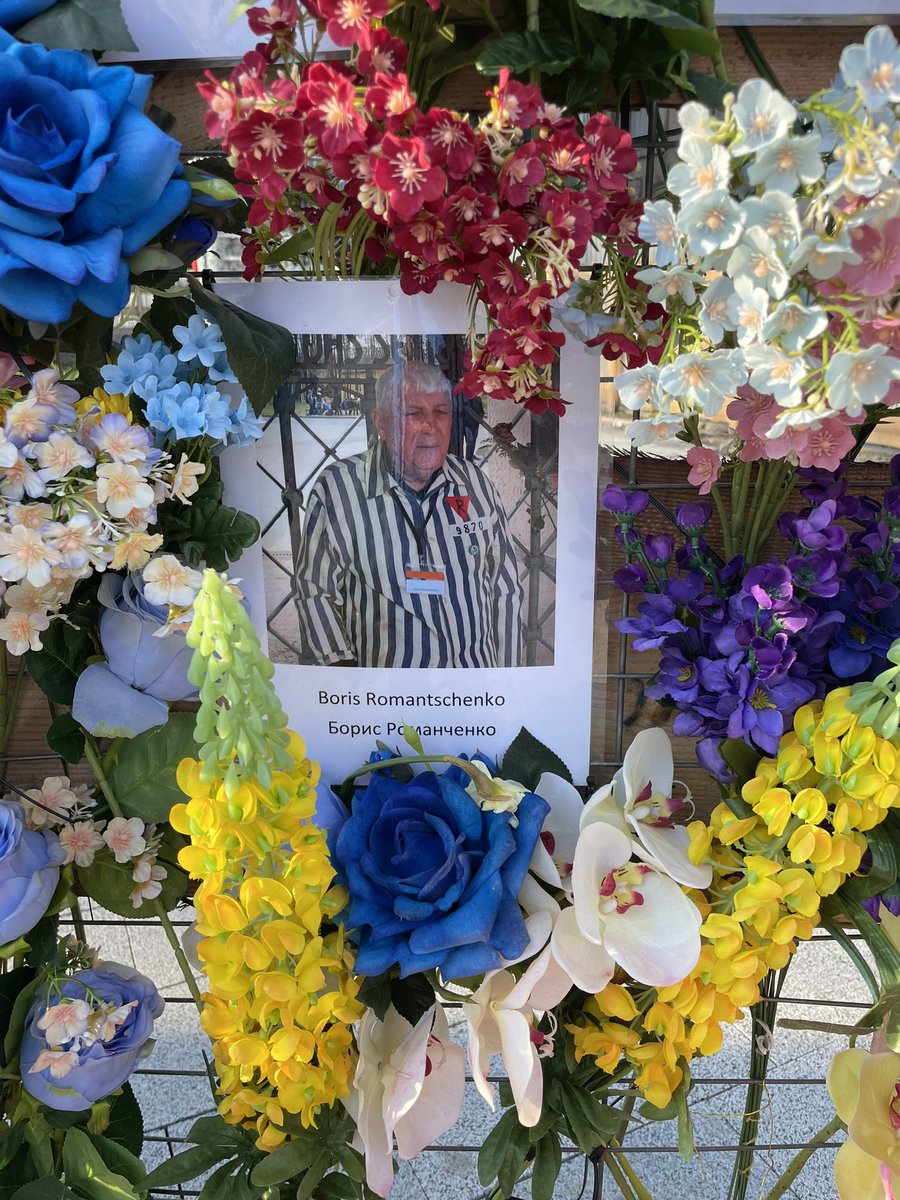 A person in Lviv this morning stares at portraits of people murdered by Russian soldiers.