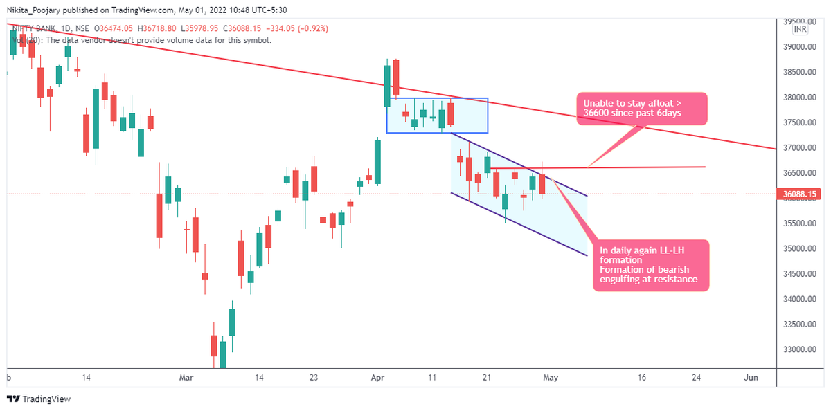 • Though the month of April started on a good footing however, as we approach towards the end of this month a huge wick on the upside indicates sellers dominance