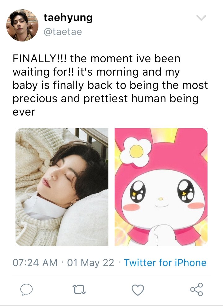 taehyung tinted his lips onto his boyfriend's as the latter squinched his nose and maffled with his raspy and drowsy voice;