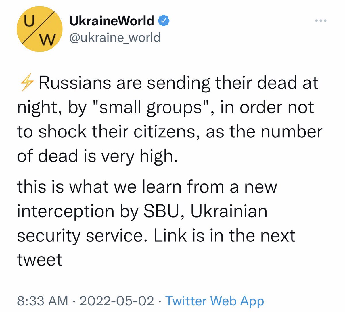 Claims the Russia is taking steps to hide the number of deaths by transferring soldiers’ bodies at night. I cannot confirm the claim. Consider for yourself