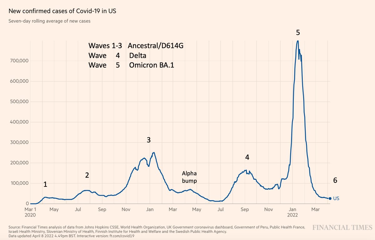 The US pandemic: We know what a country-wide surge looks like (wave 5). It's clear now that wave 6 (BA.2), yet still in the works, will not resemble that