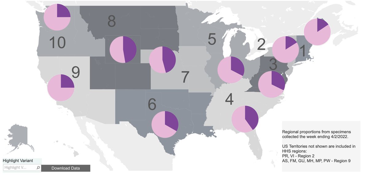 All regions of the US are well past 50% (dominant) BA.2 by sequencing/2
