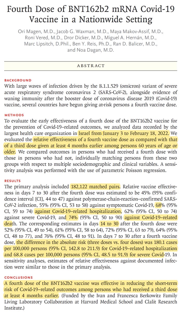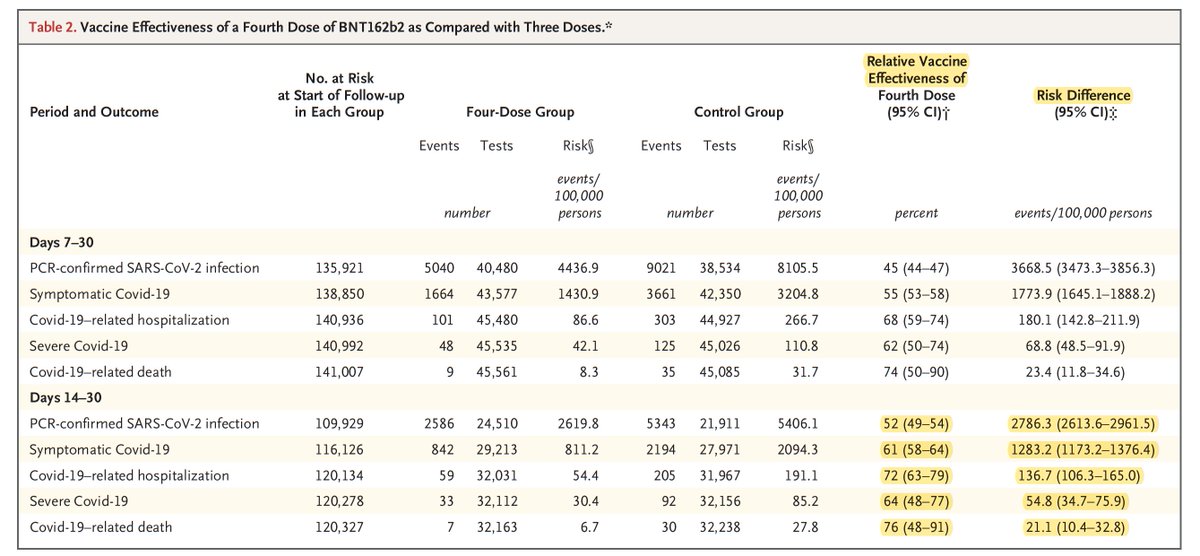 These are compelling data for a 2nd booster vs severe outcomes in people age 60+ who are >4 months from 3rd shot, backed up by other recent reports. Duration likely for another 4 months. But frequent boosters is only temporizing, an unsustainable long-term strategy ......