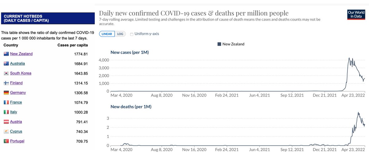 You know it's an usual moment in the pandemic when New Zealand leads the world in cases per capita, And is on the descent from its Omicron wave @OurWorldInDatanewsnodes.com/worldmonitor/