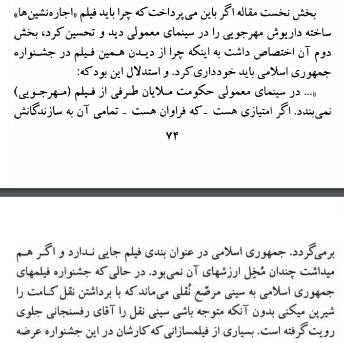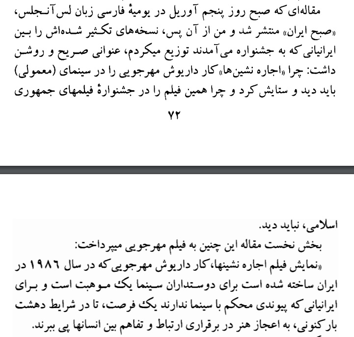 بخشهایی از این مقاله را به نقل از کتاب «سینمای در تبعید» نوشته پرویز صیاد در ادامه میبینید.
