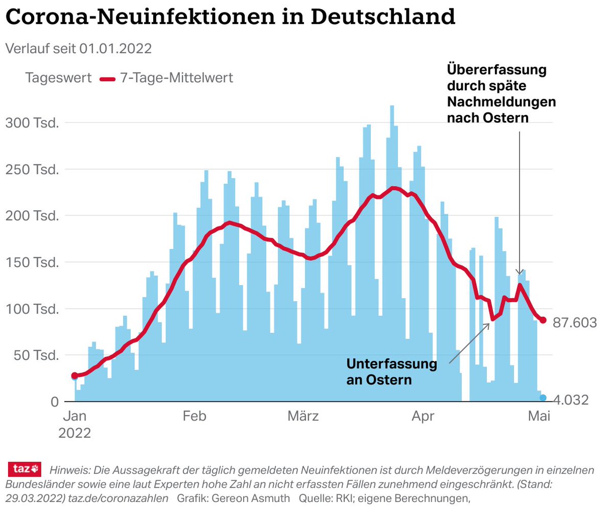 Der Tageswert von 214.985 neu registrierten #Corona-Infektionen lässt den 7-Tage-Mittelwert um 7.642 auf 176.350 fallen. Das ist der niedrigste Stand seit 9. März. (2/x)
