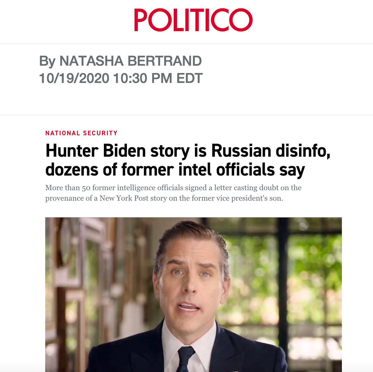 The worst, most egregious and most nefarious official US disinformation campaign in years was the pre-election CIA lie that the authentic Biden emails were "Russian disinformation."