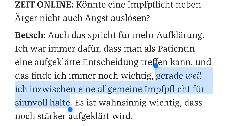 2/ Obwohl Cornelia Betsch, Ex-Mitglied im Corona-Expertenrat von Olaf Scholz und heutiges Mitglied im Dt. Ethikrat, die über viele Jahre hinweg von der Dt. Bundesregierung finanziell gefördert worden war, all dies wusste, änderte sie im November 2021 ihre Meinung, wie aus folgendem ZEIT-Artikel vom 28.11.21 klar hervorgeht.