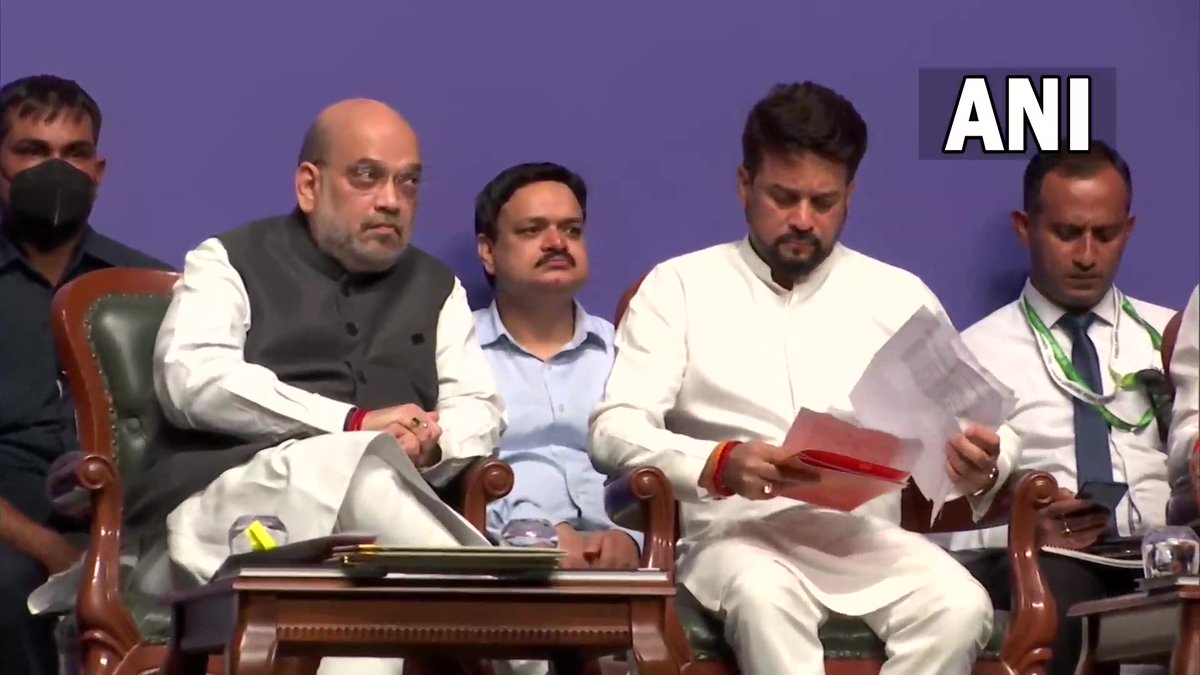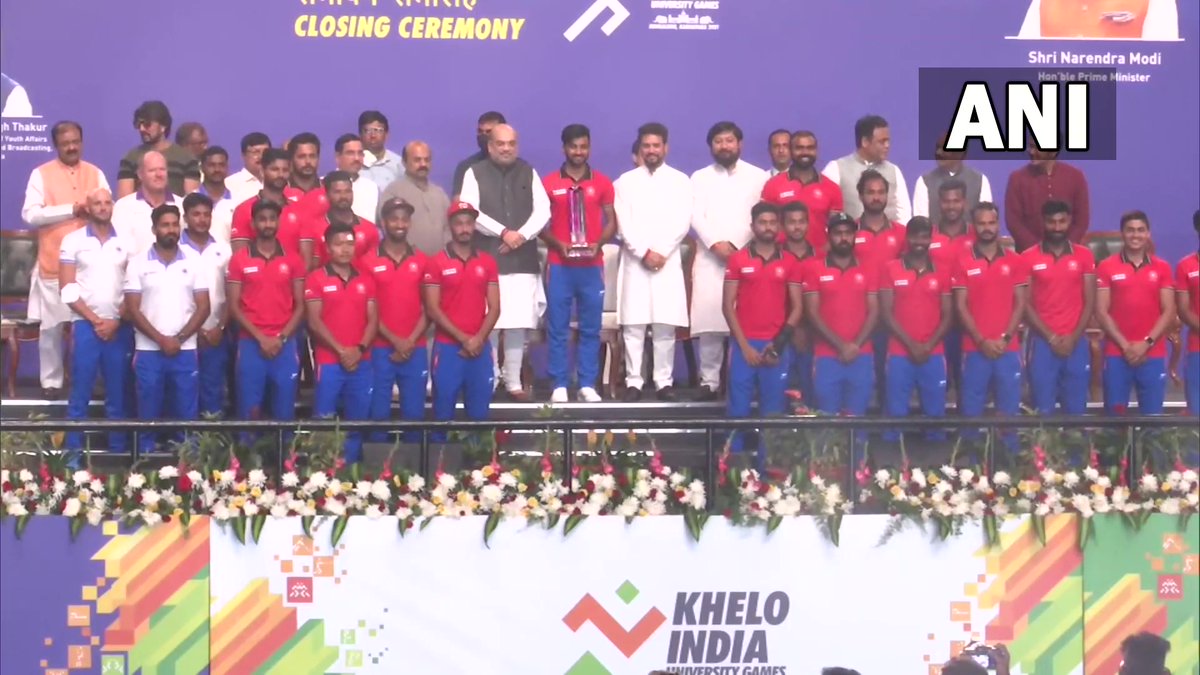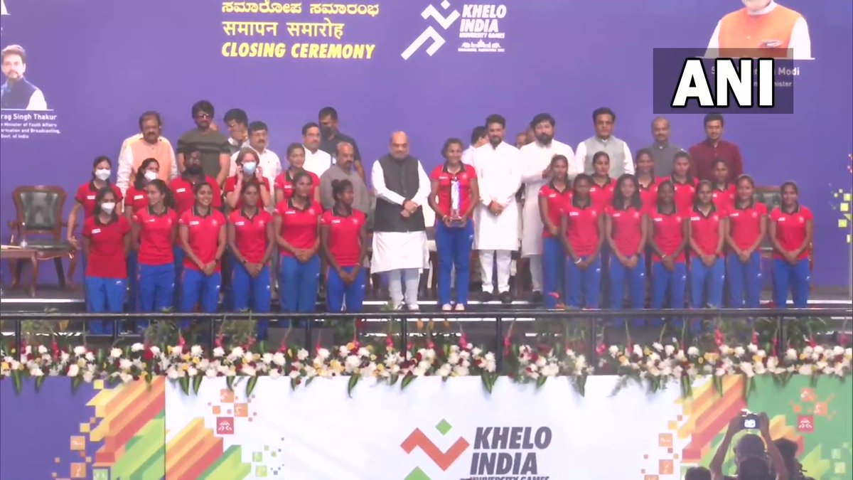 Bengaluru | Union Home Minister Amit Shah and Union Minister for Youth Affairs & Sports Anurag Thakur attend the closing ceremony of Khelo India University Games 2021