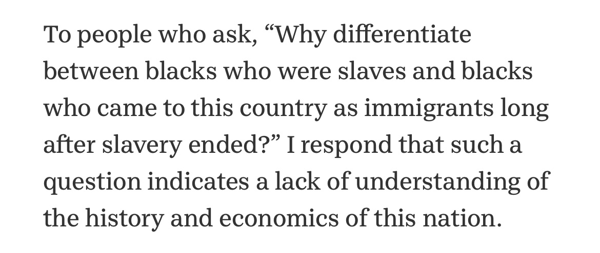 This isn’t even a coherent point on #ados. Reparations in the US is for enslavement of specific families and isn’t a gift to anyone BLACK. What points do these people think they are making when they write? newyorker.com/magazine/2022/…
