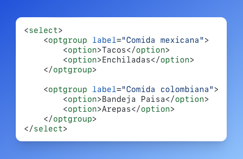 Un optgroup es la manera de que en un select se agrupen las opciones en diferentes categorias.