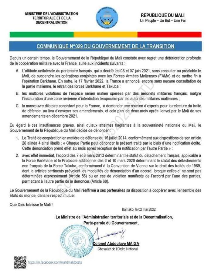 🔴🇲🇱🇫🇷 | Communiqué important du du #Mali qui dénonce l’attitude de la #France.