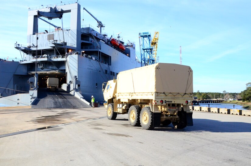 The Port which the USNS Soderman appears to be heading towards on maritime tracking is Military Ocean Terminal Sunny Point an Army Port in North Carolina and the largest military terminal on the U.S East Coast used to deploy Equipment and Assets to locations across the Atlantic.