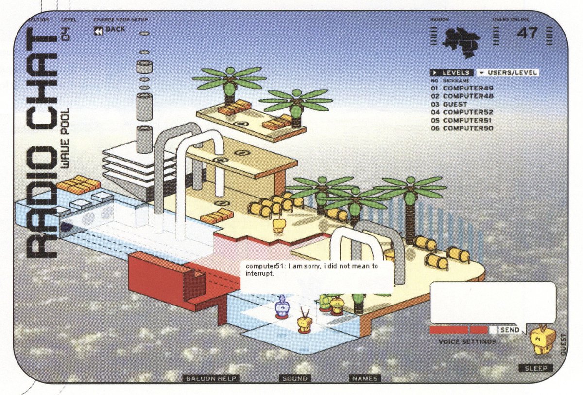 These little isometric 'Vectorscape' sites were pretty popular back then, similar to the Pixelscape style of websites like Habbo Hotel & artwork of eBoy. Features of this site included chat, backgrounds that updated w real time weather data.