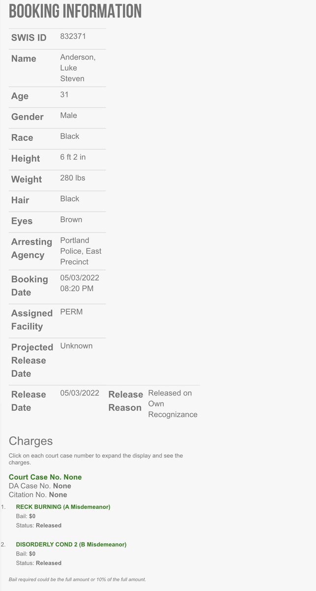#Antifa member Luke Steven Anderson, 31, was arrested at the Antifa pro-abortion riot in Portland on May 3 where they started fires & smashed windows. He was charged with reckless burning & disorderly conduct. He was quickly released without bail. archive.ph/2022.05.04-193…