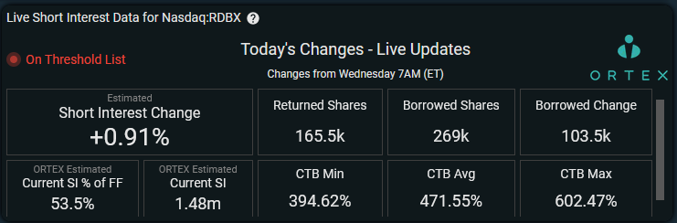 Additionally, as of yesterday, $RDBX was officially put on the Threshold Security List, which indicates that FTDs on the stock are rapidly outpacing market makers' ability to deliver them.