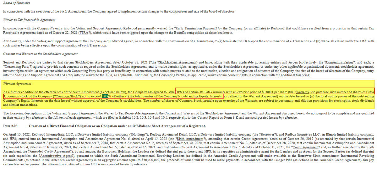 Currently there are warrants for $RDBX which are eligible for a cashless exercise starting on May 10th. This is per $RDBX's latest 8-k filing. The warrants can dilute $RDBX by up to 20% of its outstanding shares, maximum. That's 1.26M shares, approximately.
