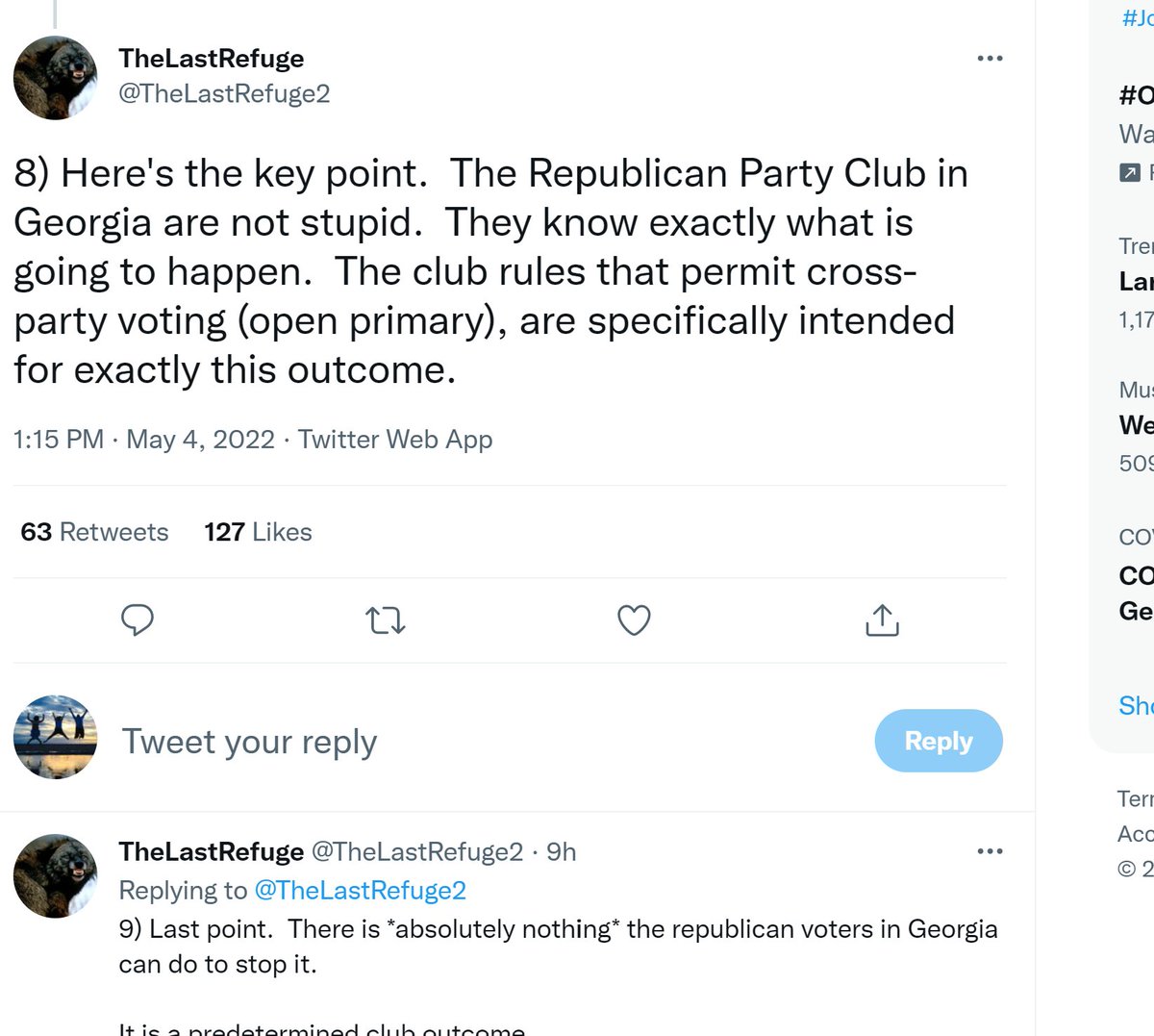 Arm yourself with facts with how things work in GA. I have zero doubt that the Dems and the Uniparty are going to engage in shenanigans. But, this is relatively easy to overcome because of how the system works.