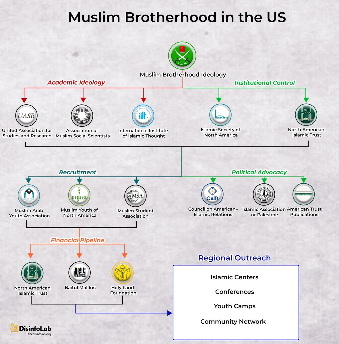 MB's strategic expansion in the US is marked by creation & fusion of multiple fronts (ISNA, NAIT), academic platforms (IIIT, AMSS, UASR), Campus fronts (MSA, MYNA), & political advocacy groups (CAIR, IAP, ATP), & regional centres.