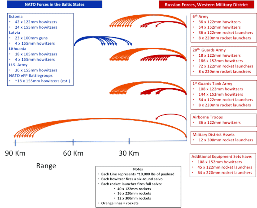 Addendum: a nice graphic from 2019. Forces have been reallocated so this is no longer a representation of facts on the ground, but it illustrates how much more artillery heavy Russian forces are than NATO competitors.